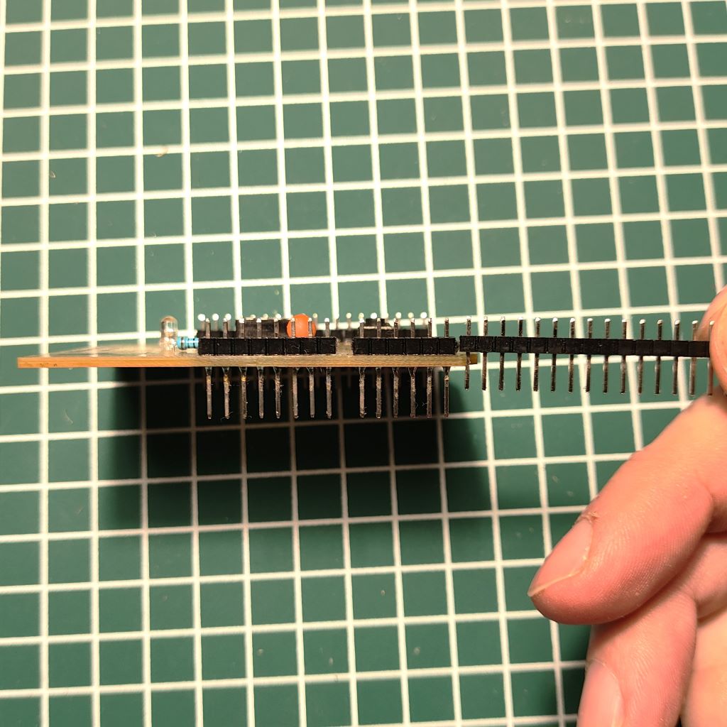 На картинке с платой расширения, когда слой меди находится снизу, легко видно, что штырьевой разъем надевается сверху и припаивается снизу. Оказывается, простое решение это использовать длинные штырьевые разъемы. Я заказал 15 мм и они подошли ровно-ровно, так что я бы сейчас заказывал бы лучше 17 мм, потому что тогда меньше шансов, что низ платы расширения будет касаться основной платы, а такое может быть!