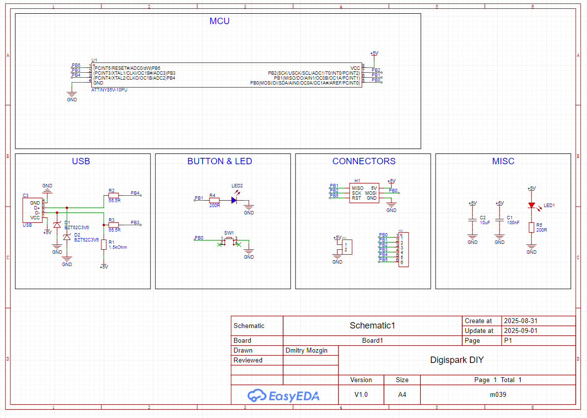 На самом деле, в этой статье рассматривать Digispark кажется, что не уместно, но я сделал эту плату до того, как решил делать клон Arduino UNO, поэтому это просто дополнительный бонус.