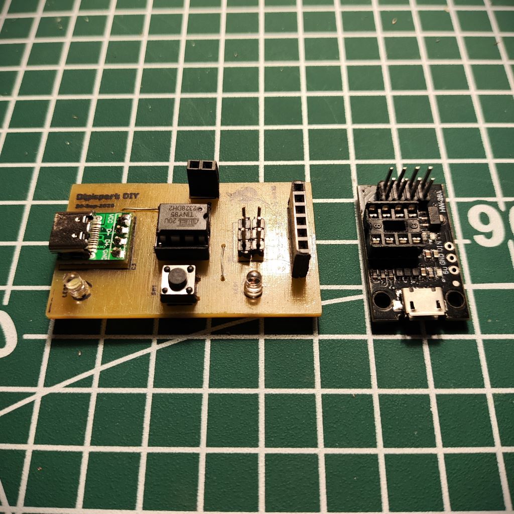 В моей прошлой статье про программный USB для CH32V003 я упомянул Digispark. Это плата с микроконтроллером ATtiny85, которая может прикидываться USB клавиатурой используя программный USB. Я про неё немного говорил, но на самом деле у меня её нет, она правда стоит не дорого и мне тоже захотелось её у себя иметь, только мне больше хочется её сделать самому, а не покупать. Точнее у меня есть клон Digispark, она ищется как ATtiny85 Development Board, куда можно вставить ATtiny85 в DIP корпусе.