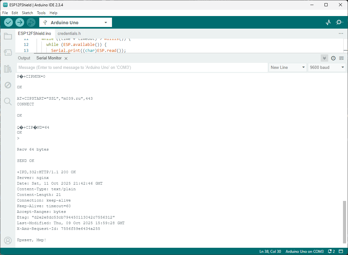 Нажмите, чтобы посмотреть код примера для ESP12F Shield