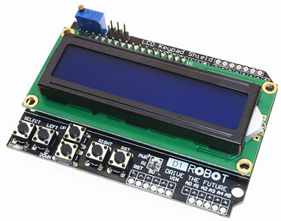 Обычное фото платы расширения с текстовым экраном и кнопочками