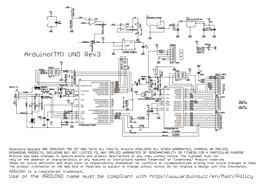Для сравнения принципиальная схема Arduino UNO R3. Выглядит сложно.