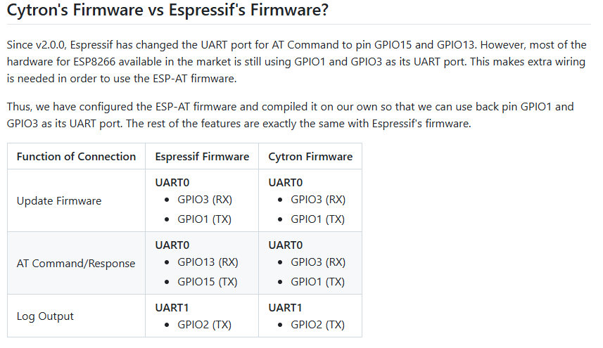 Сначала я попробовал последнюю официальную прошивку, но она не заработала. Я не понял почему, но решил искать дальше. И тут наткнулся на репозиторий esp-at-binaries, там была вот такая сноска: